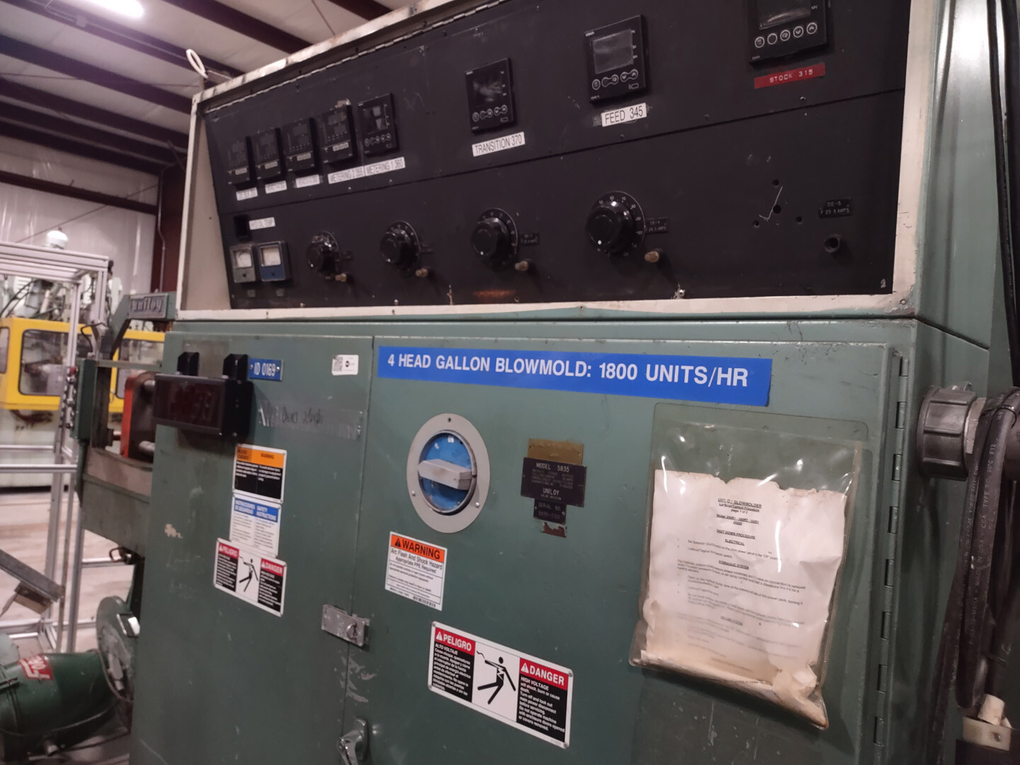 Uniloy 5835 Reciprocating 4 head Gallon blow molding machine