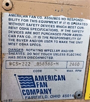| Name: | American Fan Company BCS-222 Backwardly Inclined Blower |