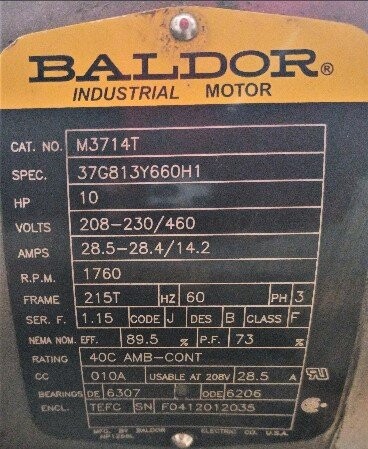 | Motor: | Baldor (M3714T) |