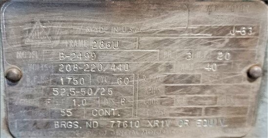 | Additional Details: | Blower Dimensions - 54 (Length) x 31 (Wide) x 62 (Tall) Inches, Has a DuroFlow GCDCAAA Rotary Blower. 3-Phase. 60 Hz |