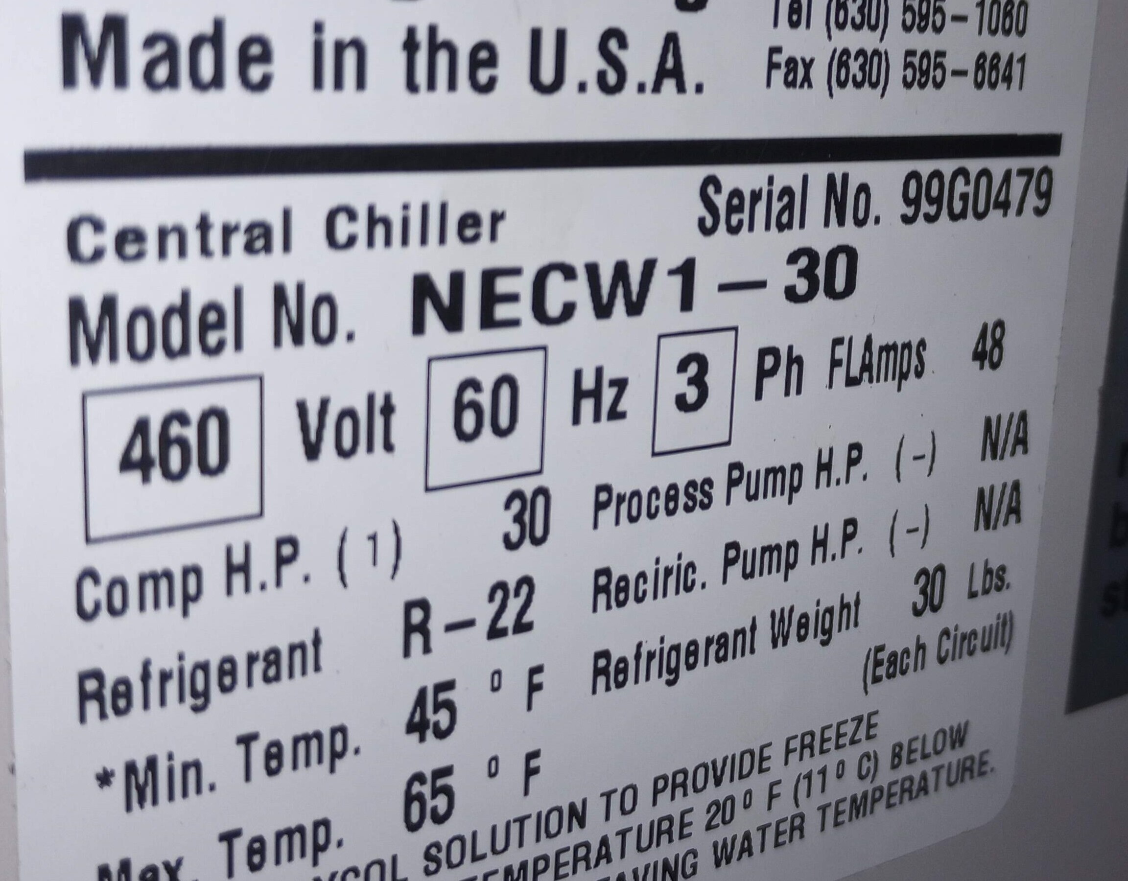 | Refrigerant: | R-22, 30 lbs. |