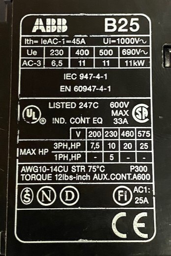 | Name: | ABB B25-30-10 33-Amp Contactor |
