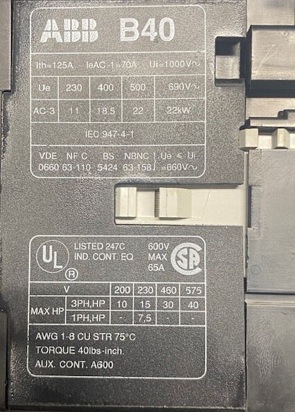 | Additional Details: | With ABB CA7 auxiliary contactors. |