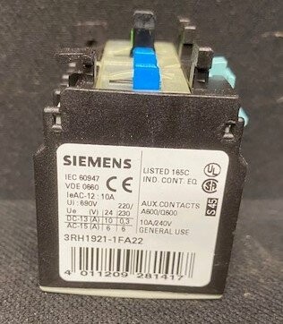 | Name: | Siemens 3RH1921-1FA22 Auxiliary Contact Block |
