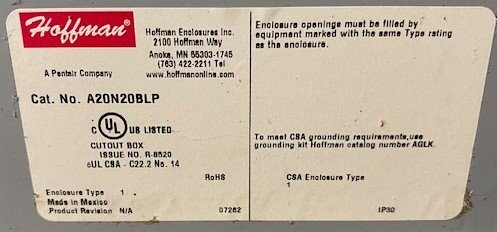 | Name: | Hoffman A20N20BLP Electrical Enclosure |