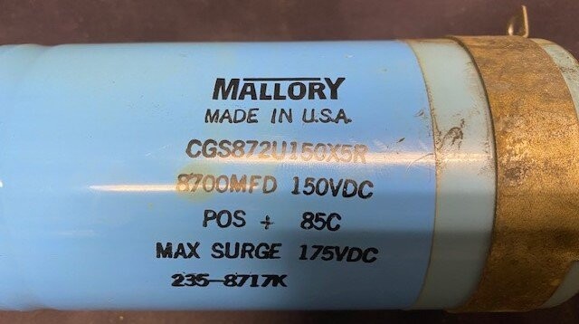 | Additional Details: | 8700MFD, POS +, 85C, Max Surge 175 VDC, |