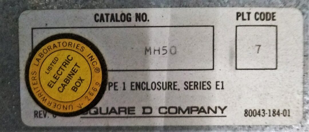 | Name: | Square D MH50 Panelboard Enclosure |
