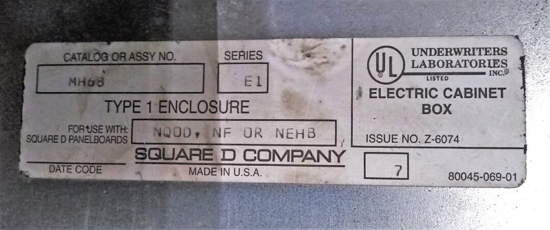 | Additional Details: | Series E1, Type 1 enclosure, for use with panelboards NQOD, NF, or NEHB. |