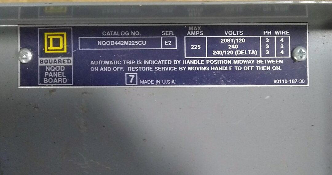 | Power: | 225 Amps, 208Y/120 Volts, 3 Ph, 4 Wires, |