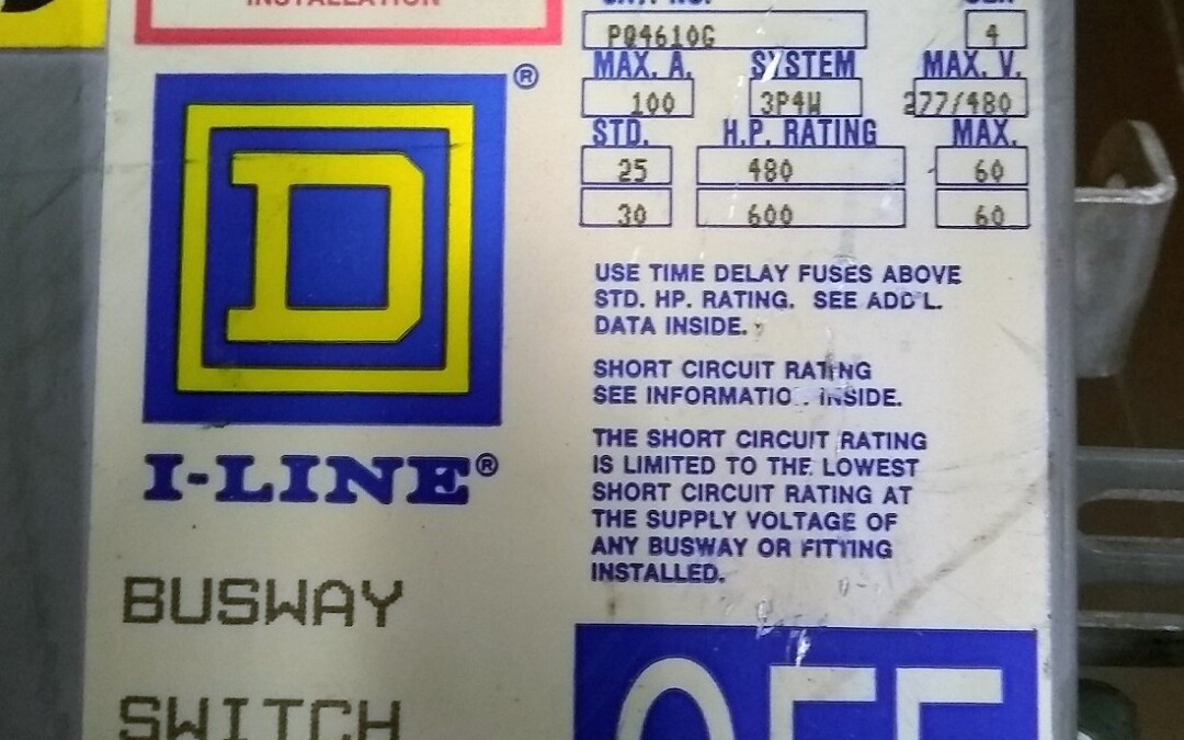 | Name: | Square D PQ4610G I-Line Busway Switch |