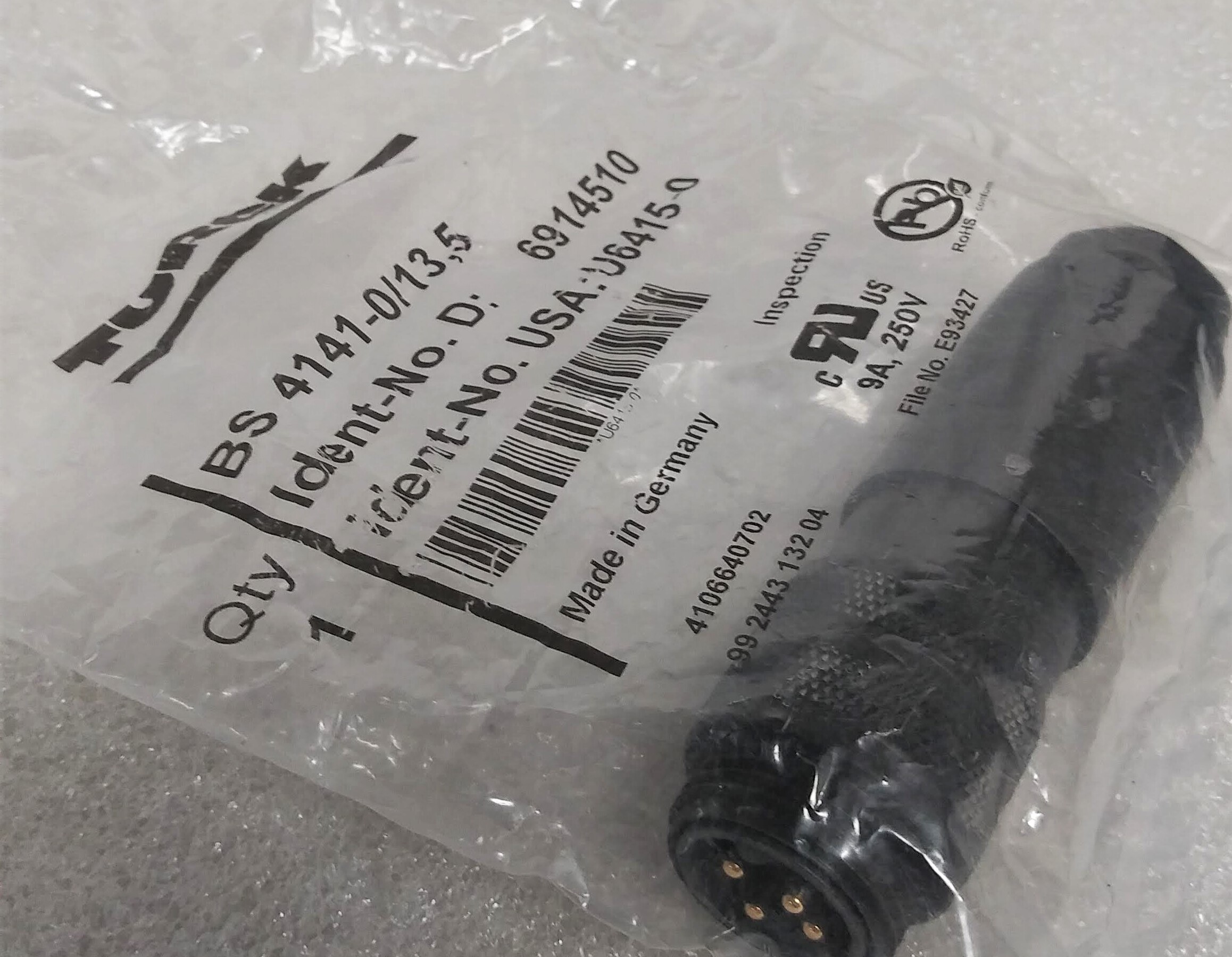 | Name: | Turck BS4141-0/13,5 4-Pin Male Connector |