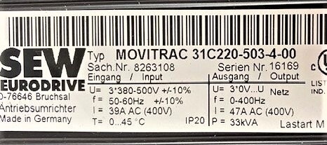 | Name: | SEW-Eurodrive 31C220-503-4-00 Movitrac Variable Frequency Drive in Enclosure |