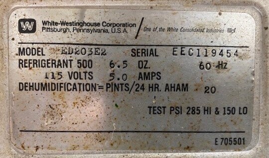 | Name: | White-Westinghouse ED203E2 Dehumidifier |