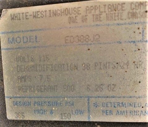 Name:White-Westinghouse ED388J2 Dehumidifier