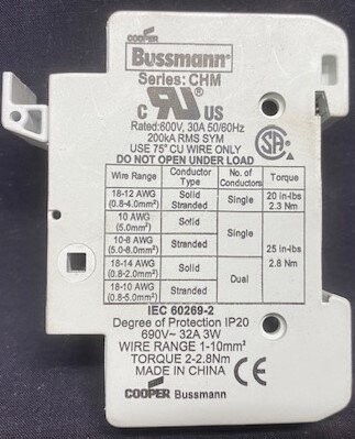| Name: | Cooper Bussmann CHM1DU 1-Pole Midget 10X38 Fuse Holder |