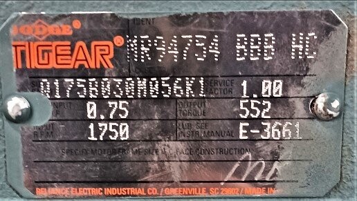 | Additional Details: | Speed Reducer Dimensions - 8 (Length) x 7 1/4 (Wide) x 7 (Tall) Inches, Input HP - 0.75, Output Torque - 552, Input RPM - 1750. |
