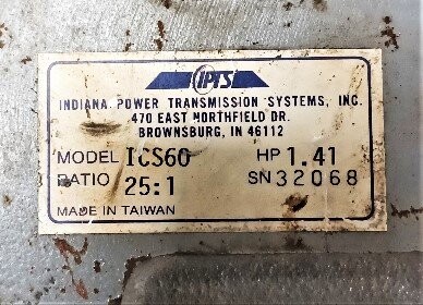 | Name: | Indiana Power Transmission Systems ICS60 Gear Box |