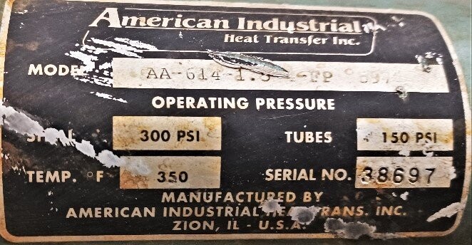 | Name: | American Industrial AA-614-1.5-4-FP Heat Exchanger |