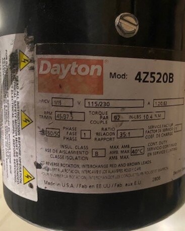 | Motor: | Dayton 4Z520B: 115/230V - 1.2/0.63A |