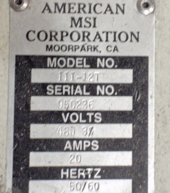 | Power: | 480Volts, 20Amps, 50-60Hz |