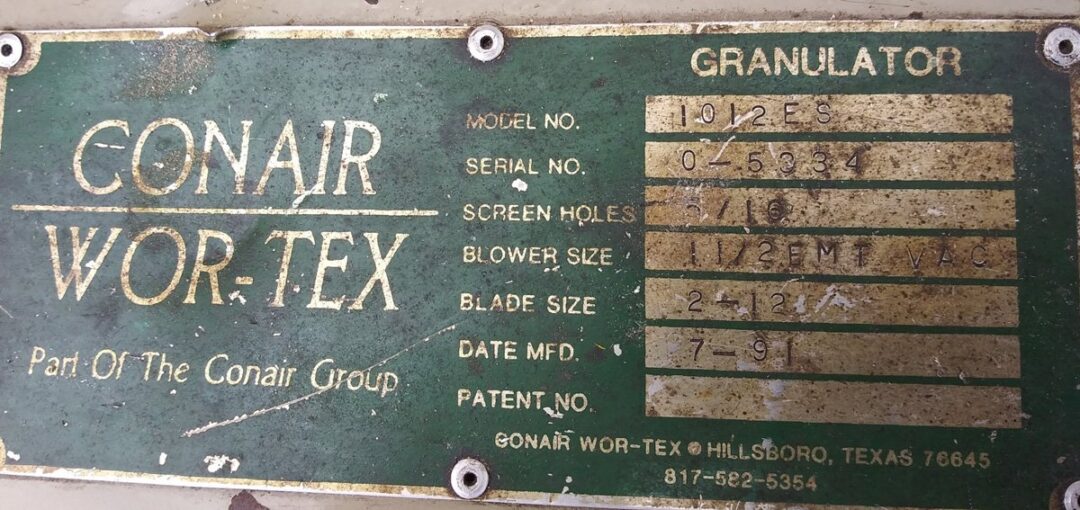 | Name: | Conair-Wortex 1012ES Plastics Granulator |
