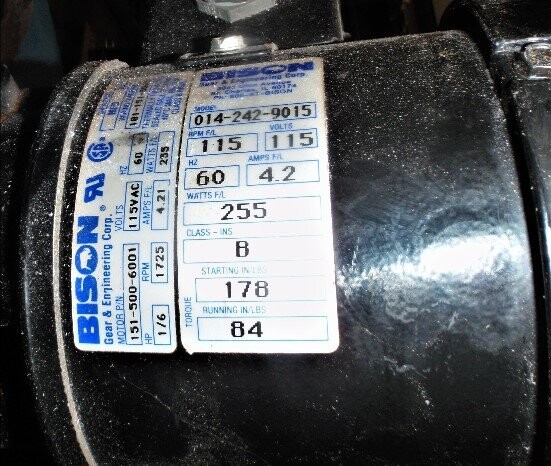 | Additional Details: | Has a 1/6 HP Bison Motor Model# 014-242-9015 1725 RPM 115V |