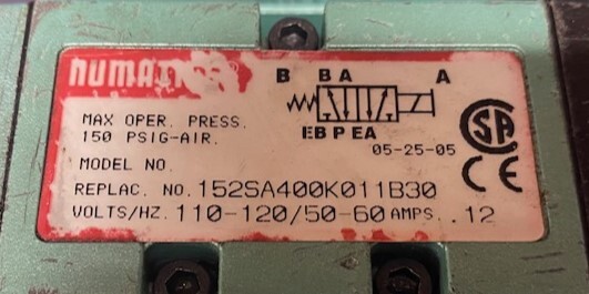 Numatics Repl# 152SA400K011B30 Doubled Valve Assembly