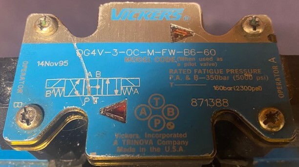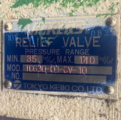 Additional Details:Vickers 508169 solenoids. Tokyo Keiki DGMCR11-3-B-11 control valve. Vickers/Tokyo Keiki TCG30-03-CV-10 Relief Valve: 35-140kgf/cm². .