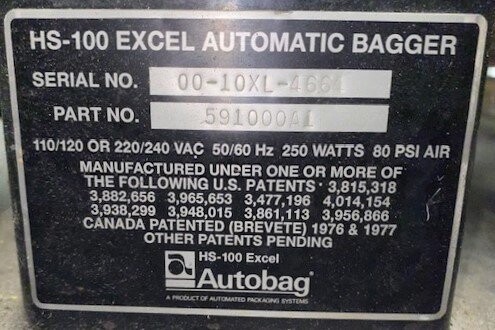 | Name: | Automated Packaging Systems HS-100 Excel Autobag Bagging Machine |