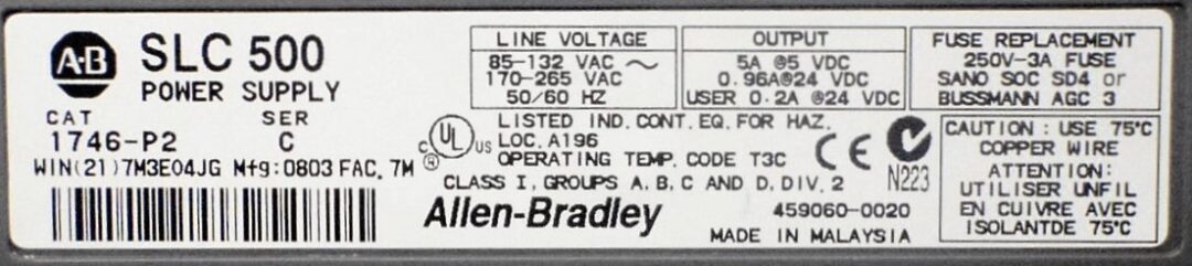 | Model: | 1746-A10, 1746-P2, 1747-L541 |