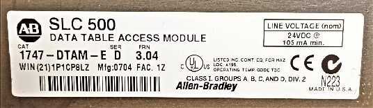 | Name: | Allen-Bradley 1747-DTAM-E Series D SLC 500 Data Table Access Module |