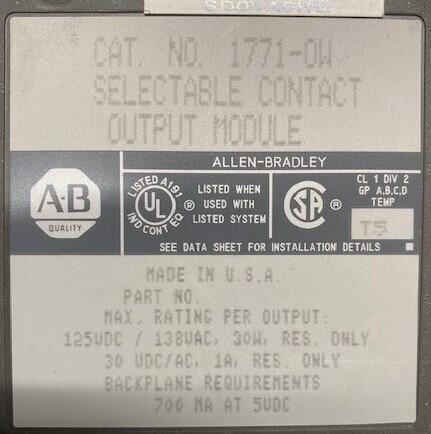 | Name: | Allen-Bradley 1771-OW Selectable Contact Output Module |