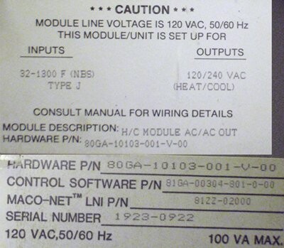 Name:Barber-Colman 80GA-10103-001-V-00 Maco 8000 Heat/Cool Module