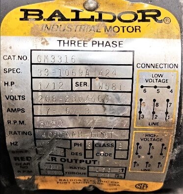 | Name: | Baldor GM3316 1/12 HP Motor |
