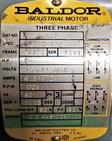 | Name: | Baldor VBM3558T 2 HP Motor |