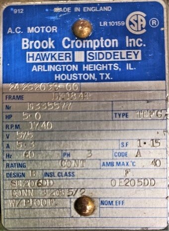 | Name: | Brook Crompton 2425209C-00 5 HP Motor |
