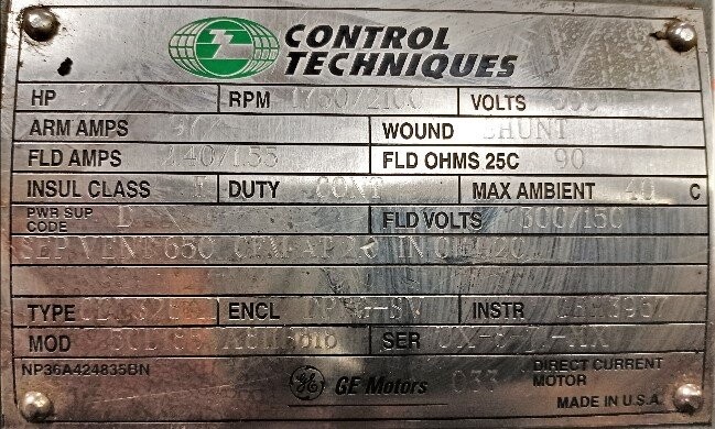 | Name: | Control Techniques 5CD185VA811B818 60 HP Motor |