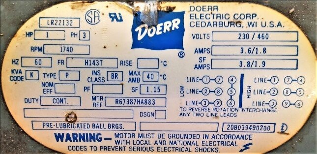 Doerr R67387HA883 1 HP AC Motor