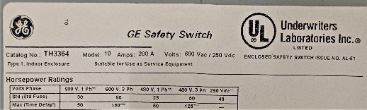 | Name: | GE TH3364 Heavy Duty Safety Switch |