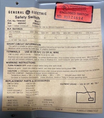 | Name: | GE THN3361 Enclosed Safety Switch |