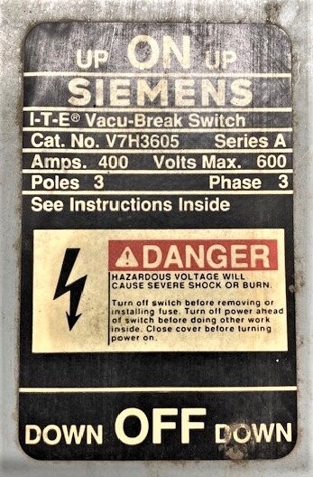 Siemens V7H3605 ITE Vacu-Break Safety Switch