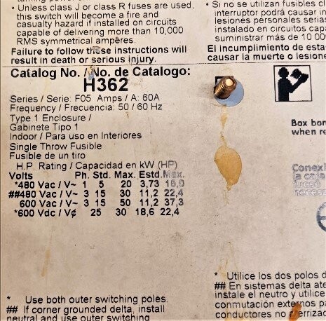 Square D H362 Heavy Duty Safety Switch