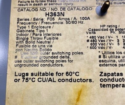 Square D H363N Series F05 Enclosed Fusible Safety Switch