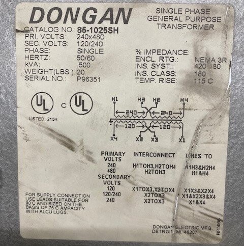 Dongan 85-1025SH Transformer