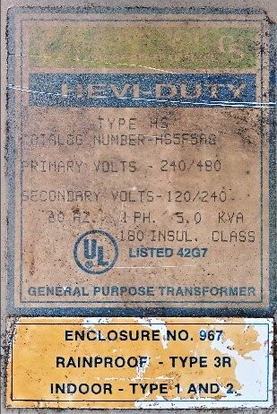 | Name: | Hevi-Duty HS5F5A8 Transformer |