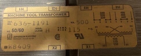 | Name: | Jefferson Electric 636-1191 Machine Tool Transformer |