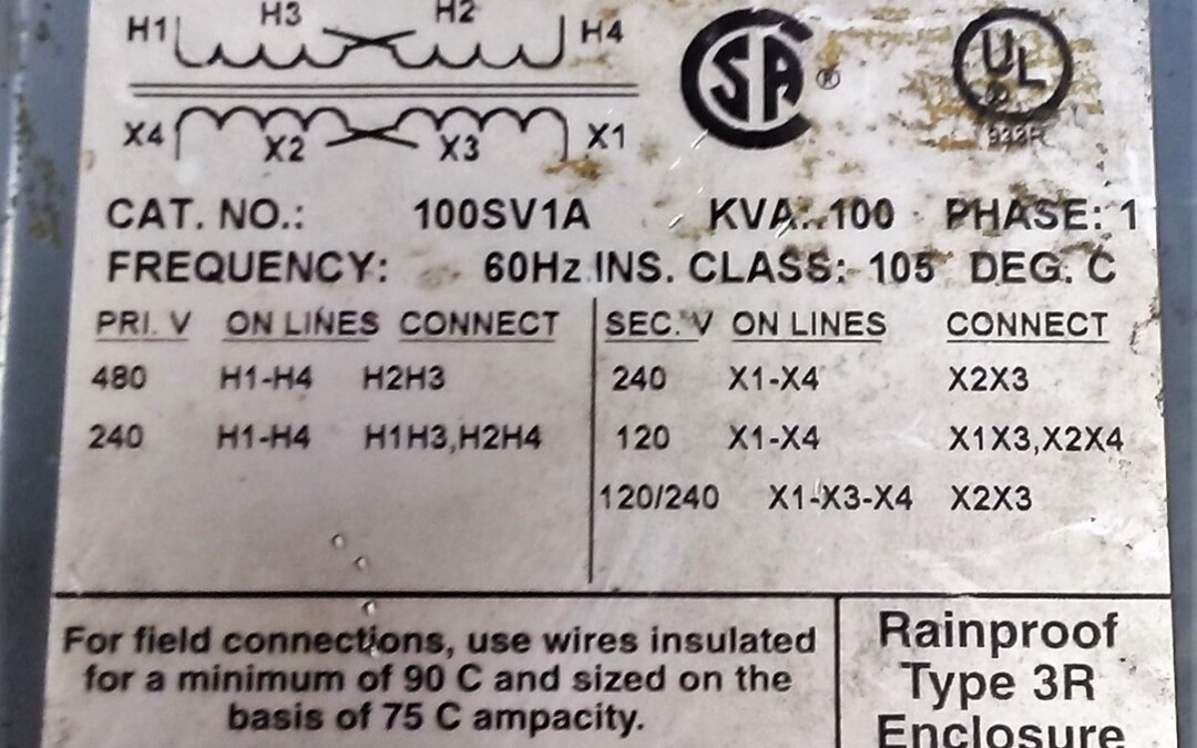 | Power: | Primary Volts: 240-480, Secondary Volts: 120-240, 1 Ph, 60 Hz |