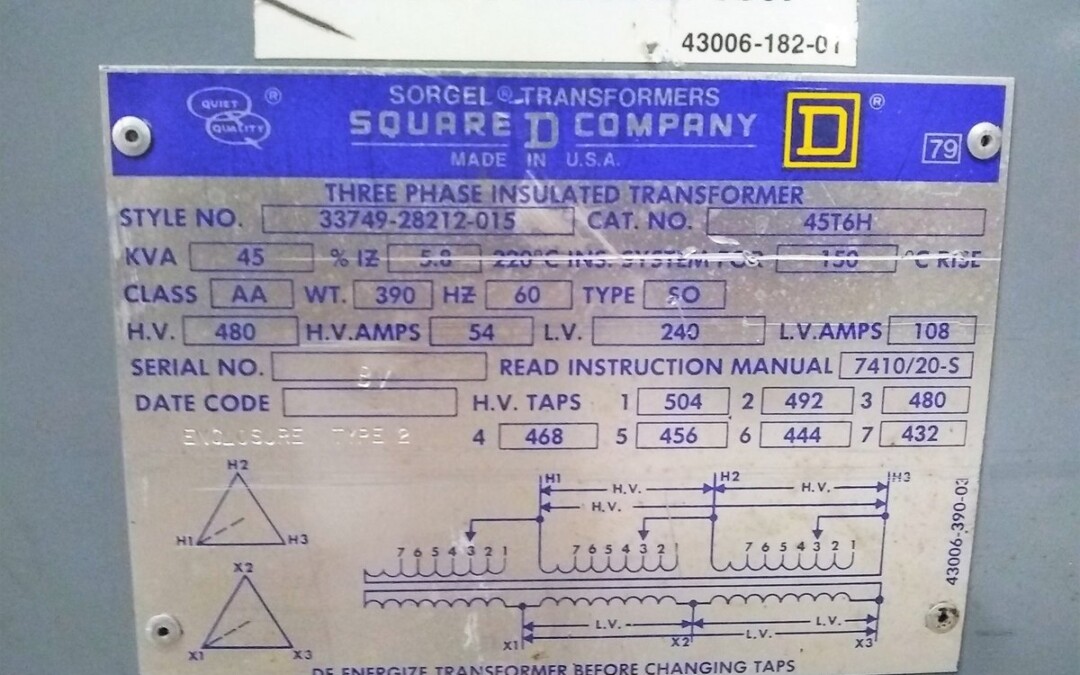 | Name: | Square D 33749-282112-015 45 KVA Transformer |