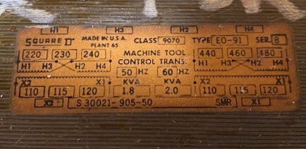 Name:Square D 9070-E091 Series B Industrial Transformer